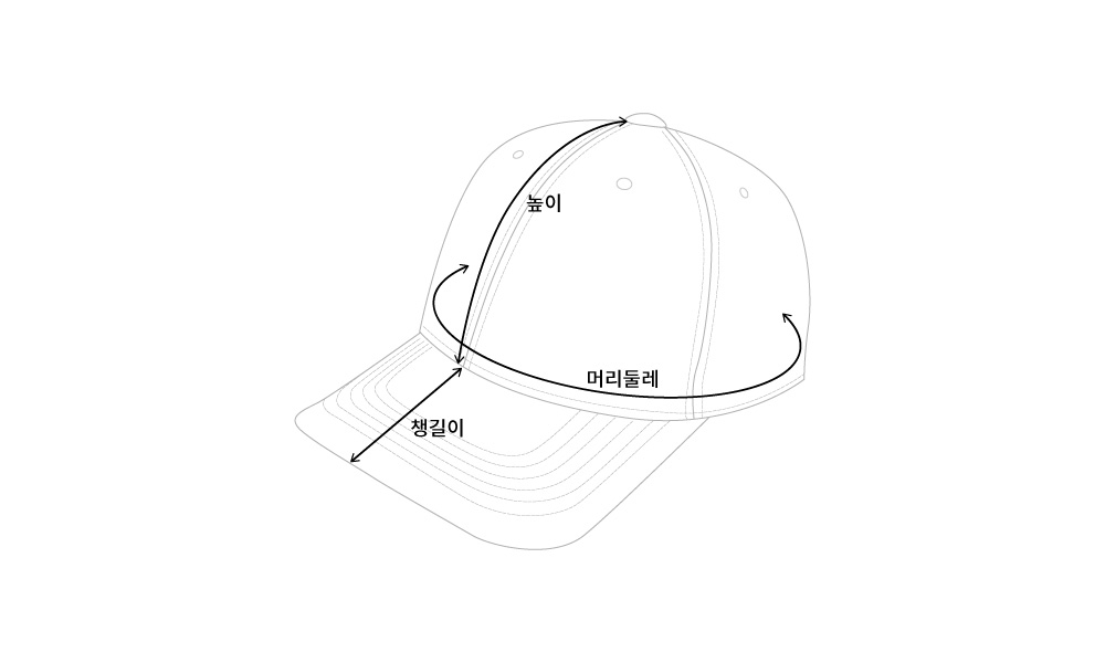 | 사이즈 | 높이 | 챙길이 | 머리둘레 |