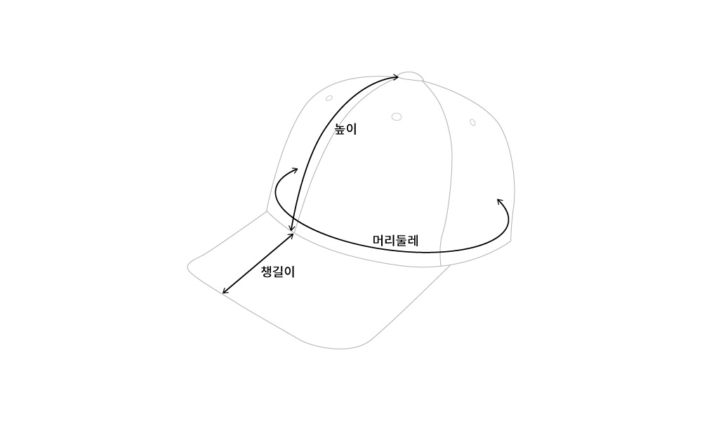 사이즈 | 앞면높이 | 챙길이 |