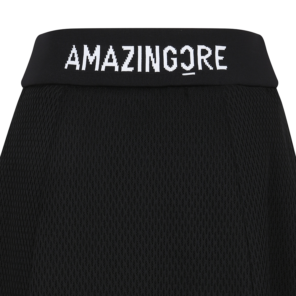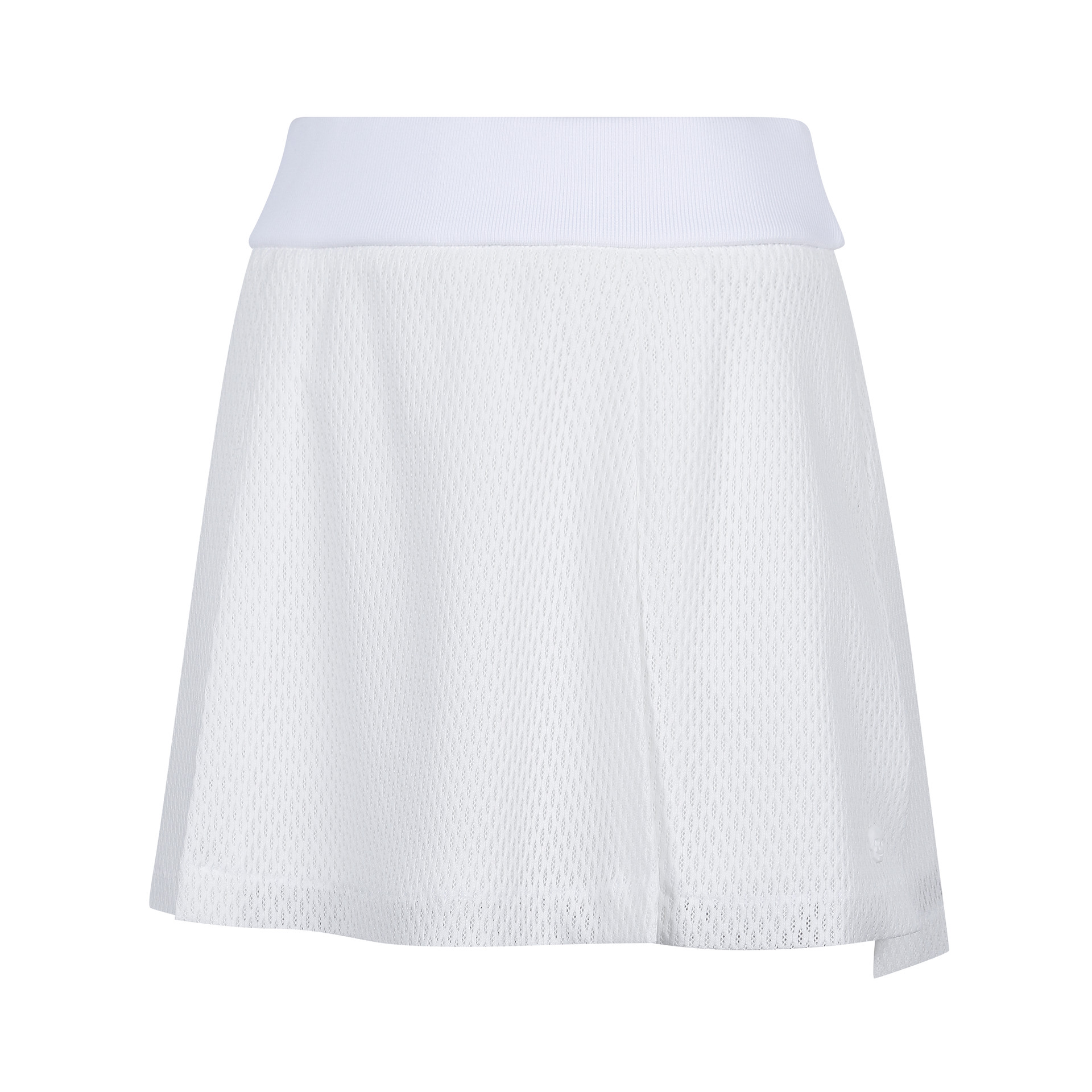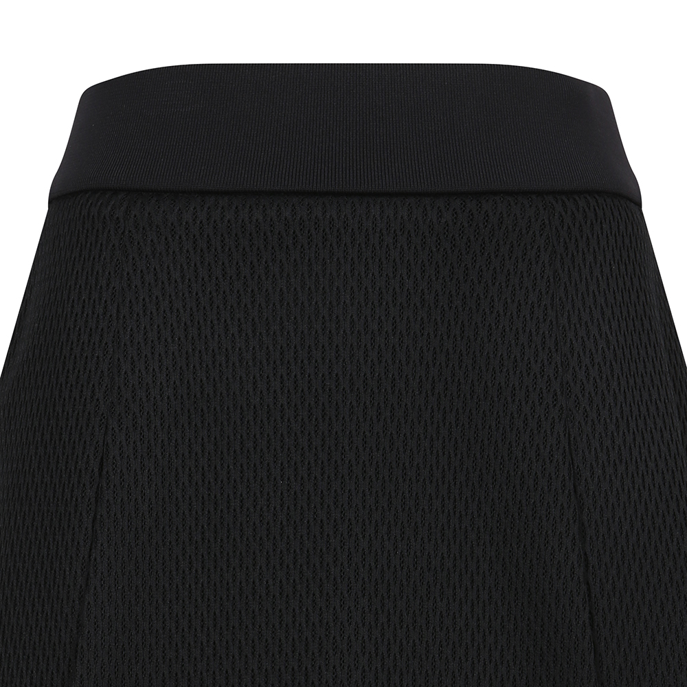 - A tech mesh layered skirt with ventilation accentuation.