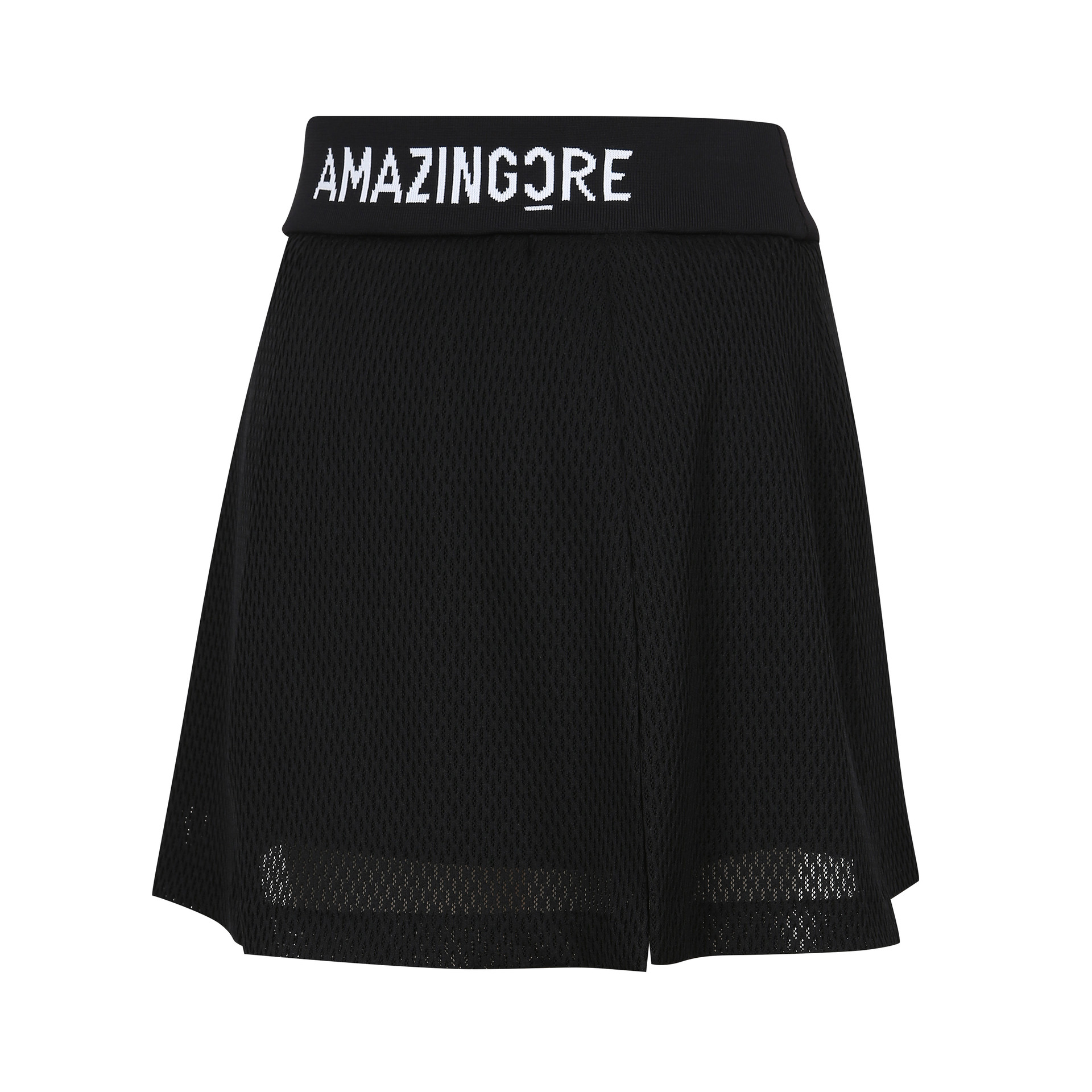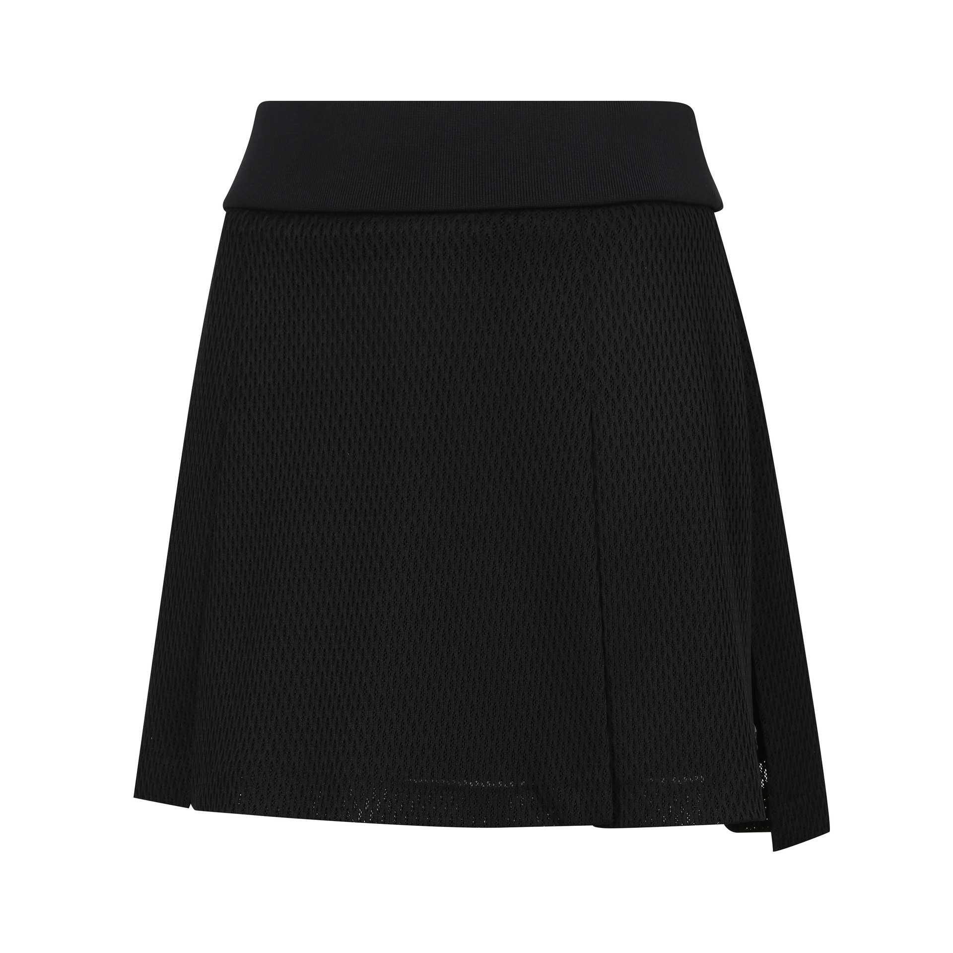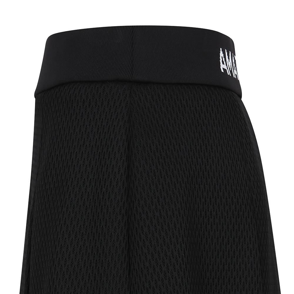 - A tech mesh layered skirt with ventilation accentuation.