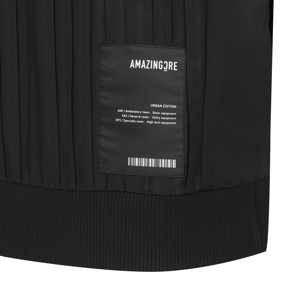 - Pleated high-neck zip-up vest made of functional polyester material
