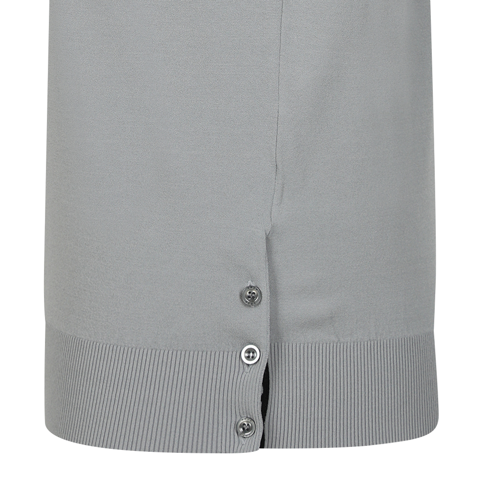 - Buttoned hem detail as a design accent